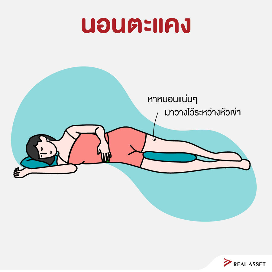นอนตะแคง : ใครชอบนอนตะแคงบ้างยกมือขึ้น? คุณนอนตะแคงแบบเดิมได้เลย แค่เอาหมอนที่มีความแน่นมาวางไว้ระหว่างเข่าเพิ่ม แต่ต้องระวังความหนาของหมอนให้ดีว่ามันไม่ควรหนาหรือแบนเกินไป บอกเลยว่าจะนอนสบายมากกกก เพราะการเอาหมอนไปวางไว้ระหว่างเข่าจะช่วยปรับให้กระดูกสันหลังส่วนล่างและสะโพกอยู่ในระนาบเดียวกัน รวมถึงช่วยลดแรงกดทับบริเวณกระดูกสันหลังส่วนล่างได้