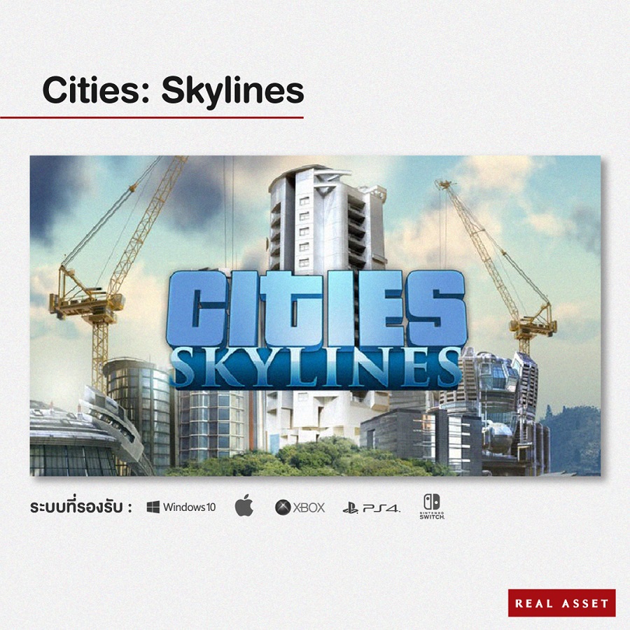Cities: Skylines : เกมสร้างและบริหารเมืองชื่อดังแห่งยุคนี้ด้วยจุดเด่นเรื่องรายละเอียดและความสมจริงสูง ตั้งแต่การวางแผนผังเมือง การสร้างระบบคมนาคมและระบบสาธารณูปโภค ซึ่งการสร้างของเราล้วนส่งผลกระทบต่อเมืองของเราในหลากหลายมิติ ใครที่อยากลองสร้างเมืองต้องห้ามพลาดกับเกมนี้ค่ะ