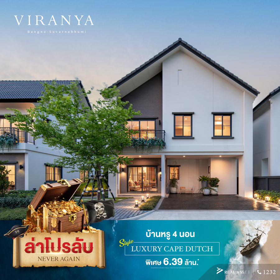 - และ โครงการ Viranya Bangna – Suvarnabhumi (วิรัณยา บางนา – สุวรรณภูมิ) บ้านหรู 4 นอน สไตล์ Luxury Cape Dutch บนทำเลศักยภาพติดถนนใหญ่ เข้า-ออกเมืองสะดวก เพียง 20 นาที สู่ใจกลางพระราม 9 และ 15 นาที ถึงสนามบินสุวรรณภูมิ พิเศษ 6.39 ล้านบาท*
