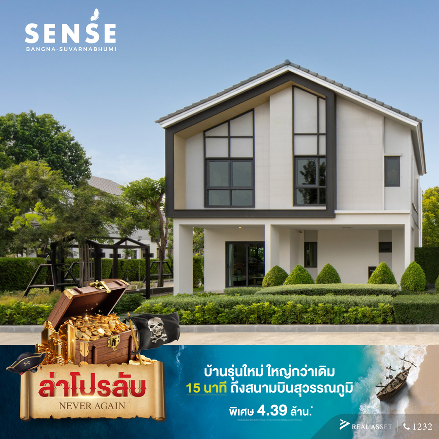 - โครงการ Sense Bangna - Suvarnabhumi (เซนส์ บางนา – สุวรรณภูมิ) บ้านรุ่นใหม่ Master Bedroom ใหญ่กว่าเดิม ผสมผสานกับการออกแบบพื้นที่ส่วนกลางภายใต้คอนเซปต์ Wellness Lifestyle ที่คำนึงถึงสุขภาพของผู้อยู่อาศัยเป็นหลัก ใกล้สุวรรณภูมิเพียง 15 นาที เข้า - ออกเมืองสะดวก พิเศษ 4.39 ล้านบาท*
