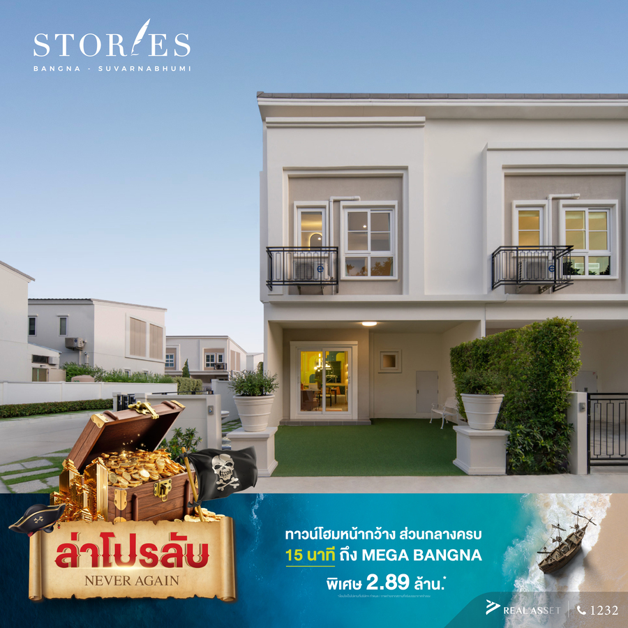 - โครงการ Stories Bangna - Suvarnabhumi (สตอรี่ส์ บางนา – สุวรรณภูมิ) ทาวน์โฮมหน้ากว้าง Flexi Function พร้อมส่วนกลางใหญ่ครบครัน 15 นาที ถึง Mega Bangna พิเศษ 2.89 ล้านบาท*