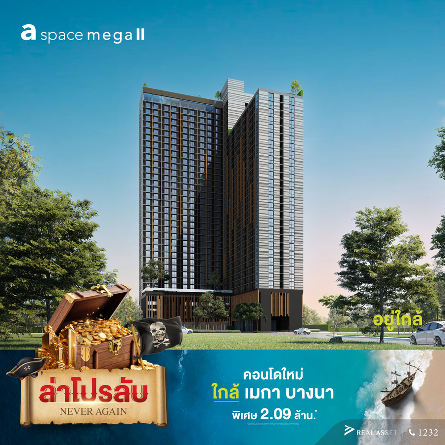 - โครงการ A Space Mega 2 (เอ สเปซ เมกา 2) คอนโดฯ ใหม่ใกล้ เมกา บางนา 0 เมตร จากเมกา บางนา* เข้าเมืองก็ง่าย ไปไหนก็สะดวก 1 นาทีจากจุดขึ้นลงทางด่วน และ 10 นาทีถึงสุวรรณภูมิ * พร้อม Sky Facilities ส่วนกลางลอยฟ้าชมวิว 180 องศา* ที่ Sky Infinity Edge Pool ที่ครบ ตอบทุกไลฟ์สไตล์ตลอด 24 ชม.* พิเศษราคา 2.09 ล้านบาท*