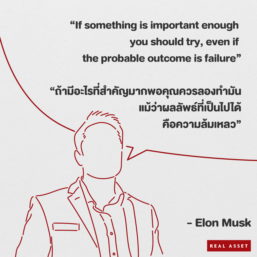 ข้อคิดดีๆ จากชายที่ใครๆ ก็รู้จัก ผู้สร้างสรรค์นวัตกรรมและสร้างองค์กรที่เปลี่ยนอนาคตของโลกอย่าง SpaceX และ Tesla Motors ดังนั้นอย่ากลัวที่จะทำในสิ่งที่เราคิดไว้ วางแผนอย่างละเอียดรัดกุมแล้วทำมันออกมา เพียงแค่ได้ลองทำต่อให้คาดว่าล้มเหลวแค่ไหน ไม่แน่มันอาจจะออกมาดีกว่าที่คุณคิดอีกนะคะ