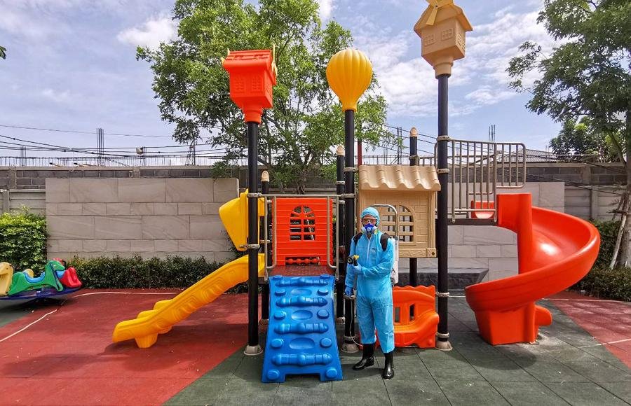REAL ASSET ฉีดพ่นฆ่าเชื้อบริเวณพื้นที่ส่วนกลาง ด้วยทีมงาน Fast Track