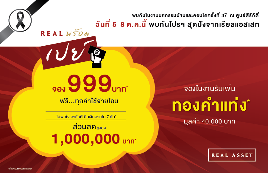 เรียลแอสเสท จัดโปร "เรียล...พร้อมเปย์!!" ที่ศูนย์สิริกิติ์ 5-8 ต.ค. 60