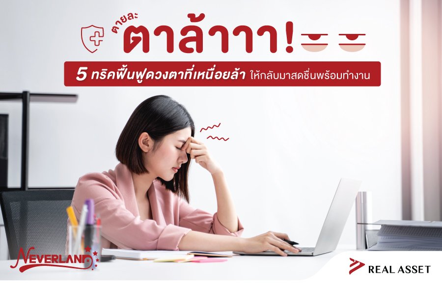 เพราะ Real Asset ใส่ใจลูกบ้านทุกคนเสมอตามแนวคิด Ever Care วันนี้เราเลยได้รวบรวมเอา 5 ทริคช่วยบรรเทาอาการตาล้ามาฝากกัน ซึ่งนี่เป็น 5 วิธีที่ทำได้ง่ายมาก ๆ ไม่ว่าจะอยู่ที่บ้านหรือออฟฟิศ ลองเลือกข้อที่สะดวกแล้วนำไปปรับใช้ในชีวิตประจำวันดูกันนะคะ