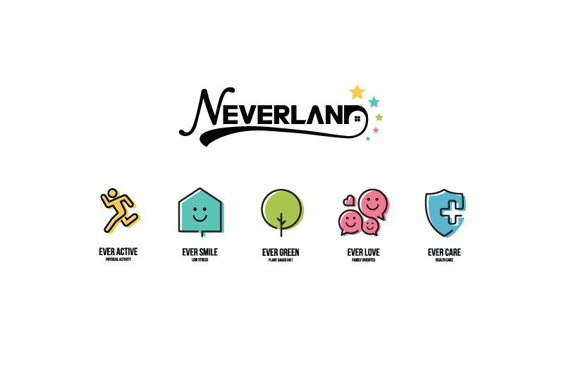 Neverland คือสถานที่ที่จะเพิ่มเวลาให้คุณได้อยู่กับคนที่คุณรักมากขึ้น หนึ่งในปัจจัยสำคัญที่ส่งผลต่อการมีอายุยืนยาวคือสภาพแวดล้อม โครงการของเราจึงออกแบบโดยคำนึงถึงการส่งเสริมสุขภาวะที่ดีของลูกบ้านเป็นหลัก ภายใต้การศึกษาแนวคิด Blue Zones ที่ทำการสำรวจวิถีชีวิตของผู้สูงอายุทั่วโลก พบว่ามีบางพื้นที่ที่มีผู้สูงอายุที่สุขภาพแข็งแรงและอายุยืนยาวกว่าคนทั่วไป เราจึงนำหลักการดำเนินชีวิตของคนในพื้นที่เหล่านั้นมาออกแบบและประยุกต์ใช้ในทุก ๆ องค์ประกอบของโครงการ โดยหวังว่าดินแดน Neverland ของเราจะเติมเต็มความหมายของบ้านในฝันของคุณ