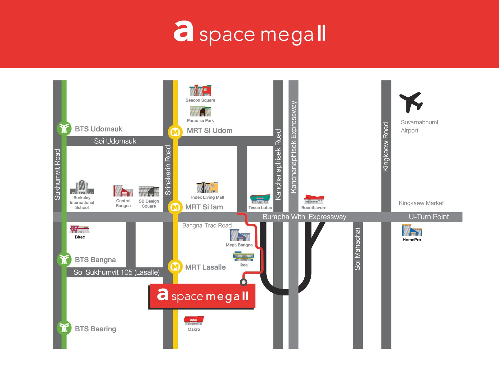 A Space Mega 2 ,Condominium next to Mega Bangna with easy city access, expressway connections, and only 10 minutes to Suvarnabhumi Airport*. Full facilities available 24/7*.
