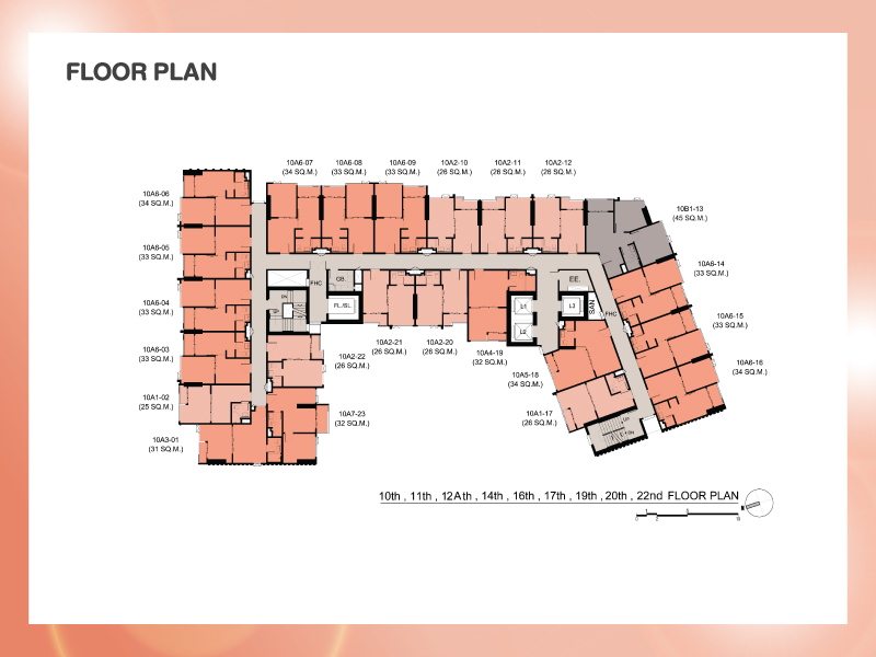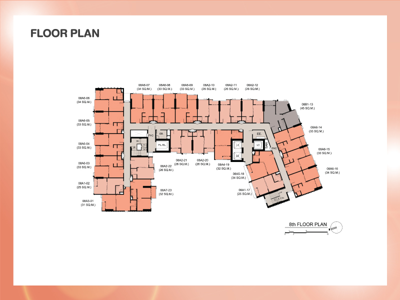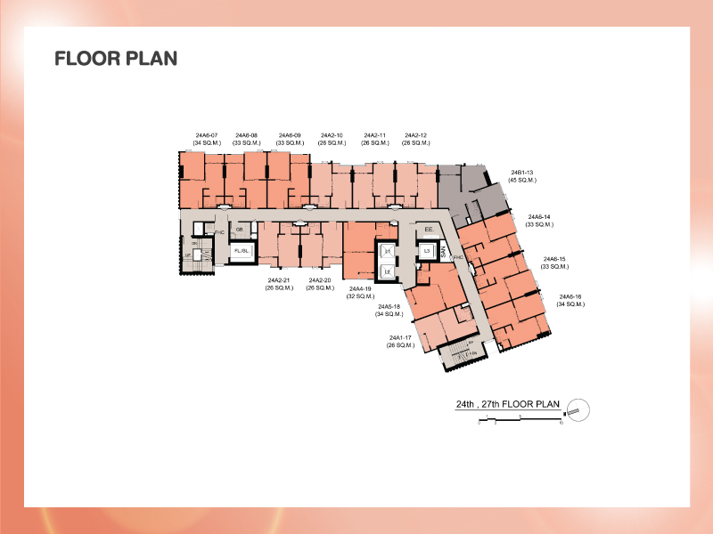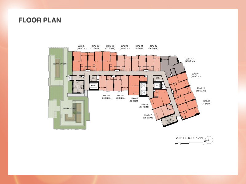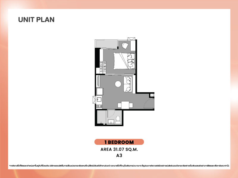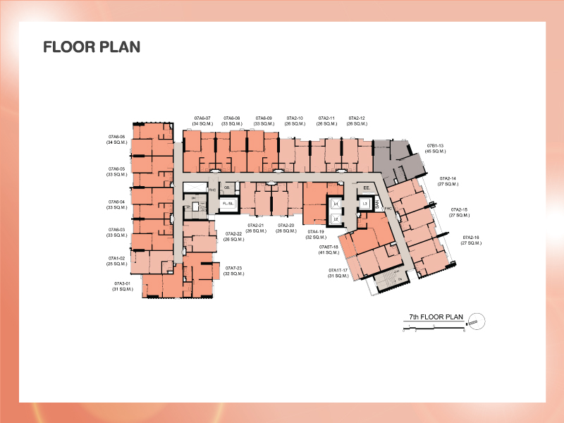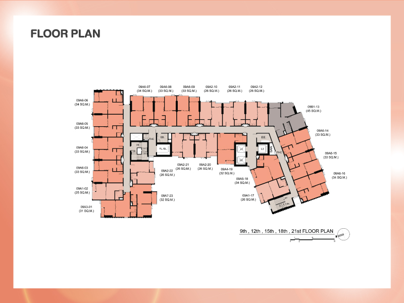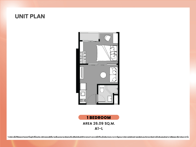 1 Bedroom: 26-35 sq.m. 1 Bedroom (T): 31-41 sq.m. 2 Bedroom: 45-60 sq.m. |