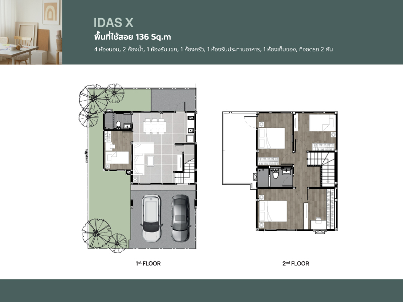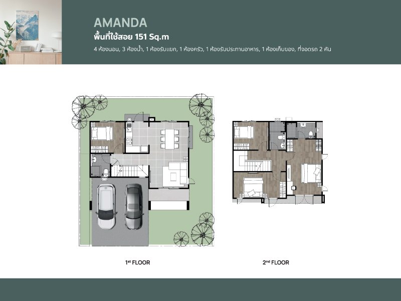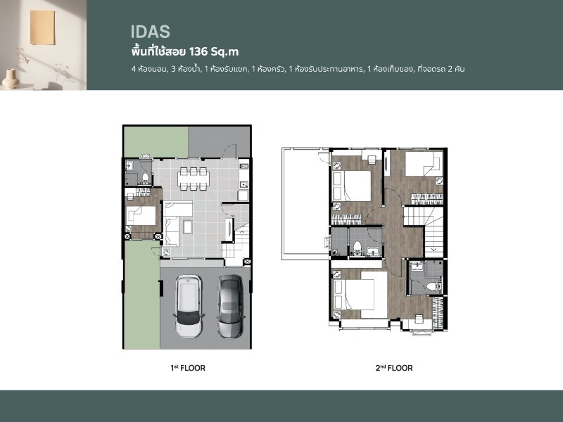 2-Story Townhome: 8-meter frontage, land size 28 – 35 Sq.wa, usable area 136 Sq.m. 2-Story Twin House: Detached home-like functionality, land size 39 - 42 Sq.wa, usable area 151 Sq.m. |