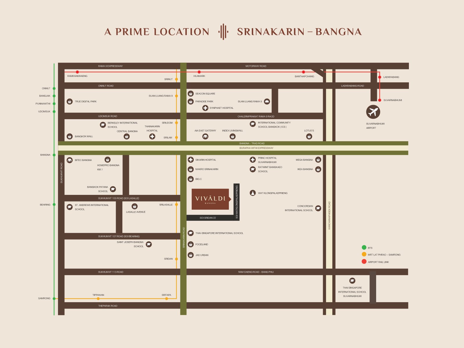 Vivaldi Bangna is strategically located for easy commuting, with access to: