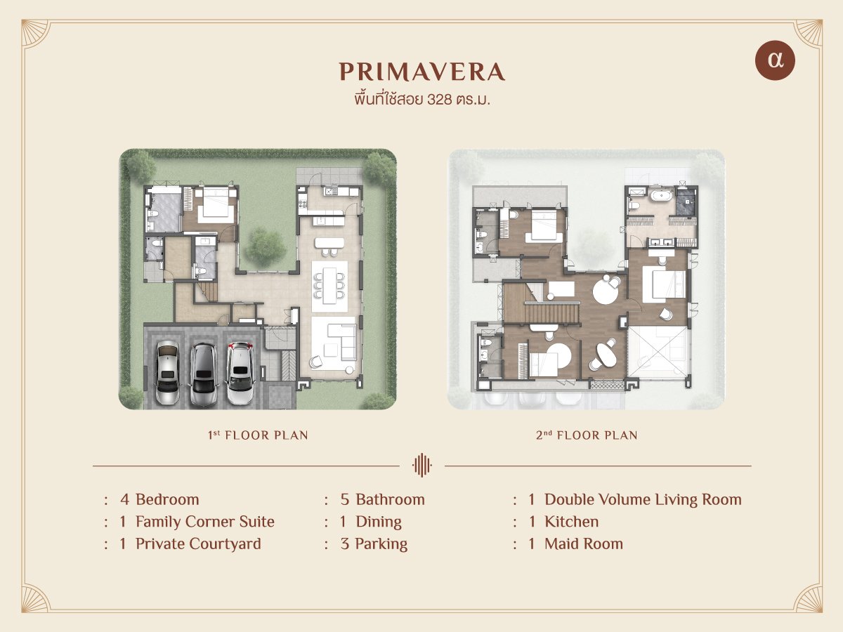 - Primavera – A luxurious 2-story single house with 328 sq.m. of space, designed for a refined and luxurious lifestyle.