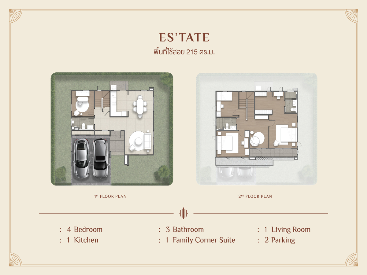 - Es’tate – A 2-story single house with 215 sq.m. of living space, perfect for medium-sized families.