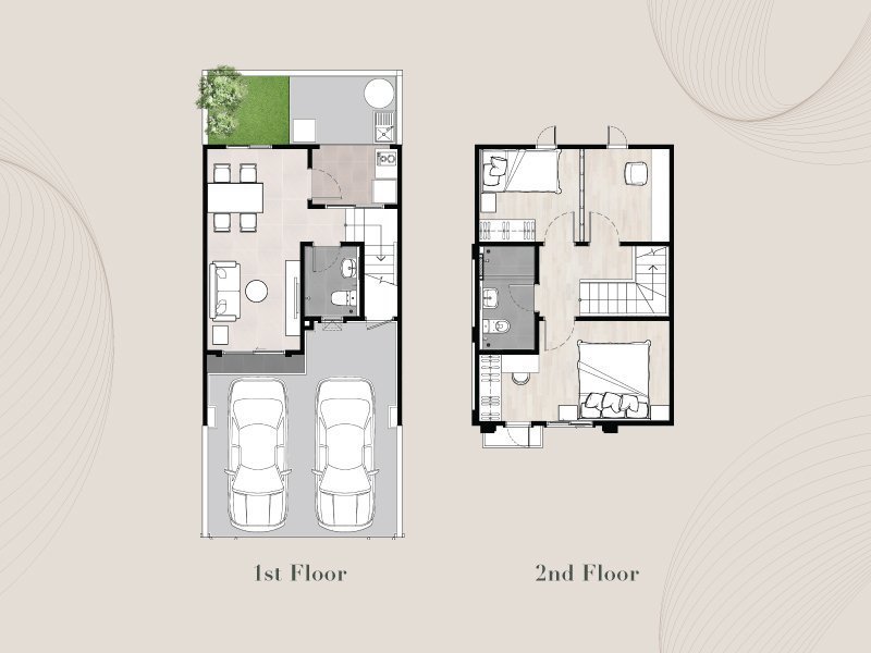 Two-storey townhomes with a frontage width of 5.20 meters (2 bedrooms, 2 bathrooms, 2 parking spaces, and 1 multipurpose room) |