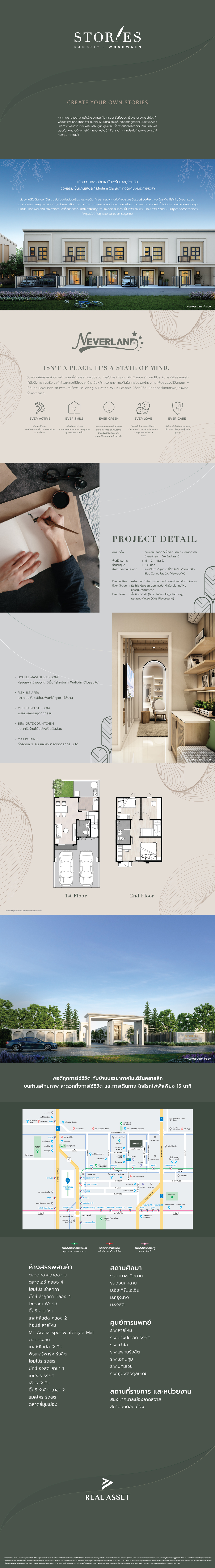 If your vision of success includes a warm family and unforgettable moments of happiness, Stories Rangsit-Wongwaen is designed for you. Every aspect of the living space has been meticulously planned to ensure functional yet cozy designs, allowing you to create a unique life story. Each corner of your home will hold its own memorable “story” that adds value and meaning.